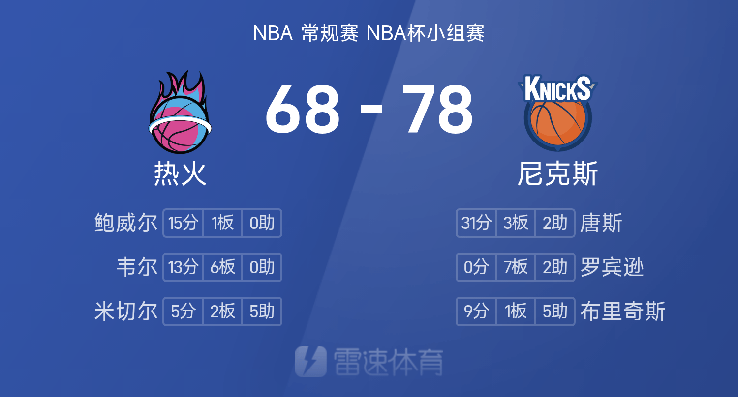 NBA半场:唐斯31分,阿努诺比伤退,尼克斯78-68热火