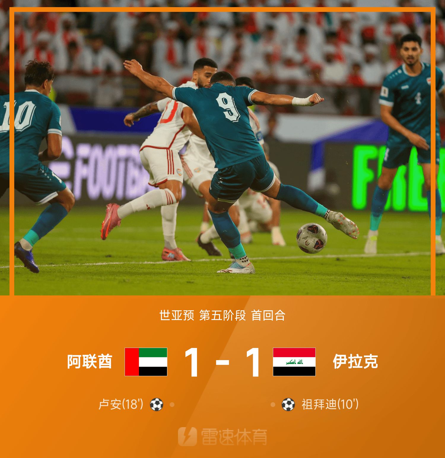世亚预战报:卢卡斯最后一投被吹,阿联酋1-1伊拉克