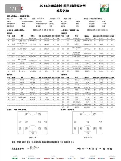 上海海港首发:1-颜骏凌、4-王燊超、5-张琳芃、32-李帅、40-吾米提江-玉苏普、10-马特乌斯-维塔尔(F)、21-梅伦多(F)、22-马修斯-茹萨(F)、26-刘若钒、45-莱昂纳多(F)、49-李新翔