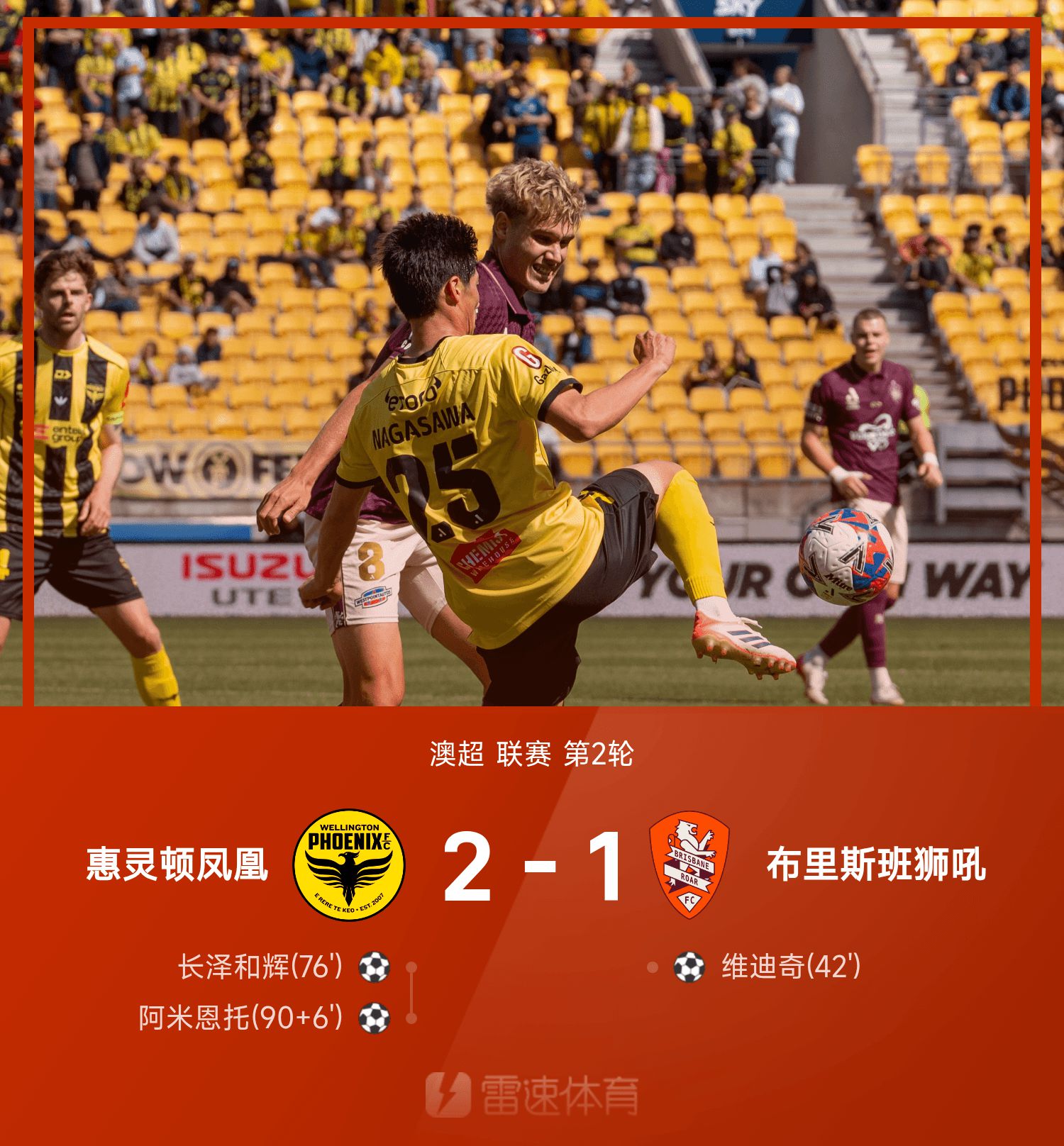 6686体育平台10月26日讯 25/26赛季澳超联赛事第2轮,惠灵顿凤凰2-1战胜布里斯班狮吼。上半场竞赛,维迪奇抓住詹姆斯差错机会取得进球。下半场长泽和辉抢点破门扳平赛果分,阿米恩托补时最后一投弑旧主。