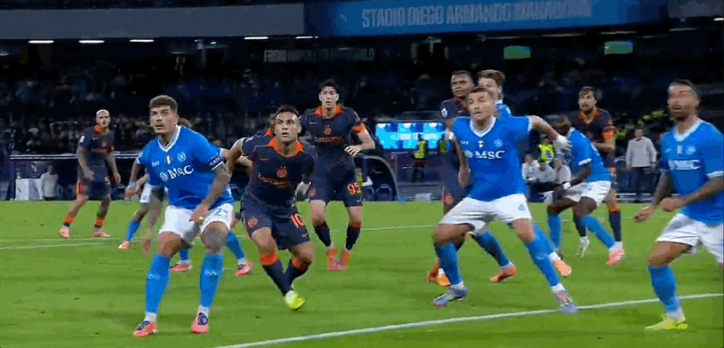 15’劳塔罗三秒区绝佳机会,打门被那不勒斯守门员扑出