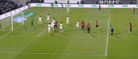 41’利雅得体育右路输送传禁区,门前包抄球员却稍慢一步错失良机