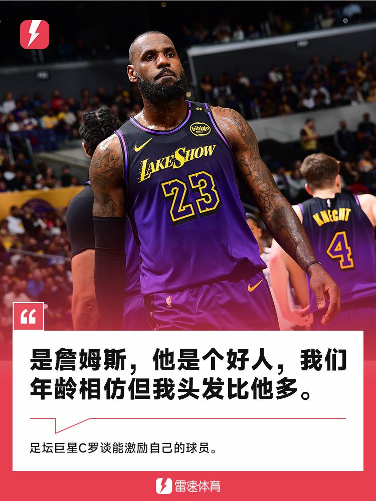 C罗:谁能激励我?我自己选一个,其他也有很多好榜样,比如篮球运动员勒布朗·詹姆斯,我们年龄相仿,他是个好人但我头发比他多,哈哈哈哈!他的身体机能依然保持得不错,也在场上拼搏着,也保持了很好的竞技状态,还有莫德里奇,他也保持得很棒。”