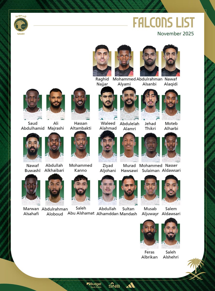沙特公布11月国家队大名单:多萨里领衔;将与非洲两队交手